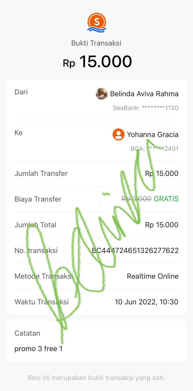 pakai promo 3 free 1 bulan juni, ini pakai jatah free promonya.